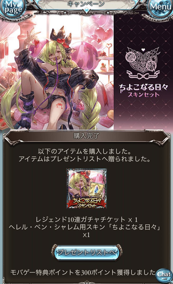 スキンに関する詳細は、キャンペーンページのtips、及びhelpにてご確認ください。 ちよこなる日々スキンセット セット内容 レジェンド10連ガチャチケットとヘレル・ベン・シャレム専用スキン「ちよこなる日々」のセットです。ヘレル・ベン・シャレム専用スキン「ちよこなる日々」販売!SocialGameInfo gamebizjpCygames、『グランブルーファンタジー』でHAPPY VALENTINE!を14日より開催!ヘレル・ベン・シャレム専用Cygames、『グランブルーファンタジー』でHAPPY VALENTINE!を14日より開催! ヘレル・ベン・シャレム専用スキン「ちよこなる日々」販売! 21年02月03日 12時02分